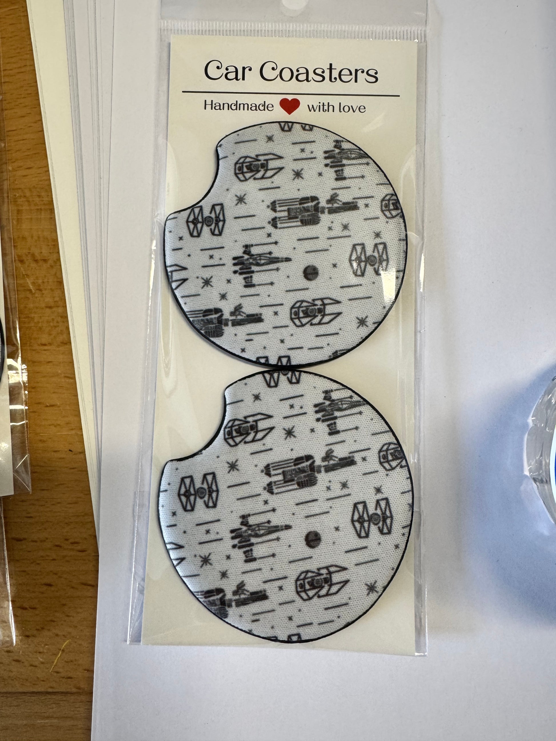 Custom made car coasters are here! These car coasters are perfect to decorate your car with or as a gift to any loved one. They are a perfect way to bring a little Disney love to your car.