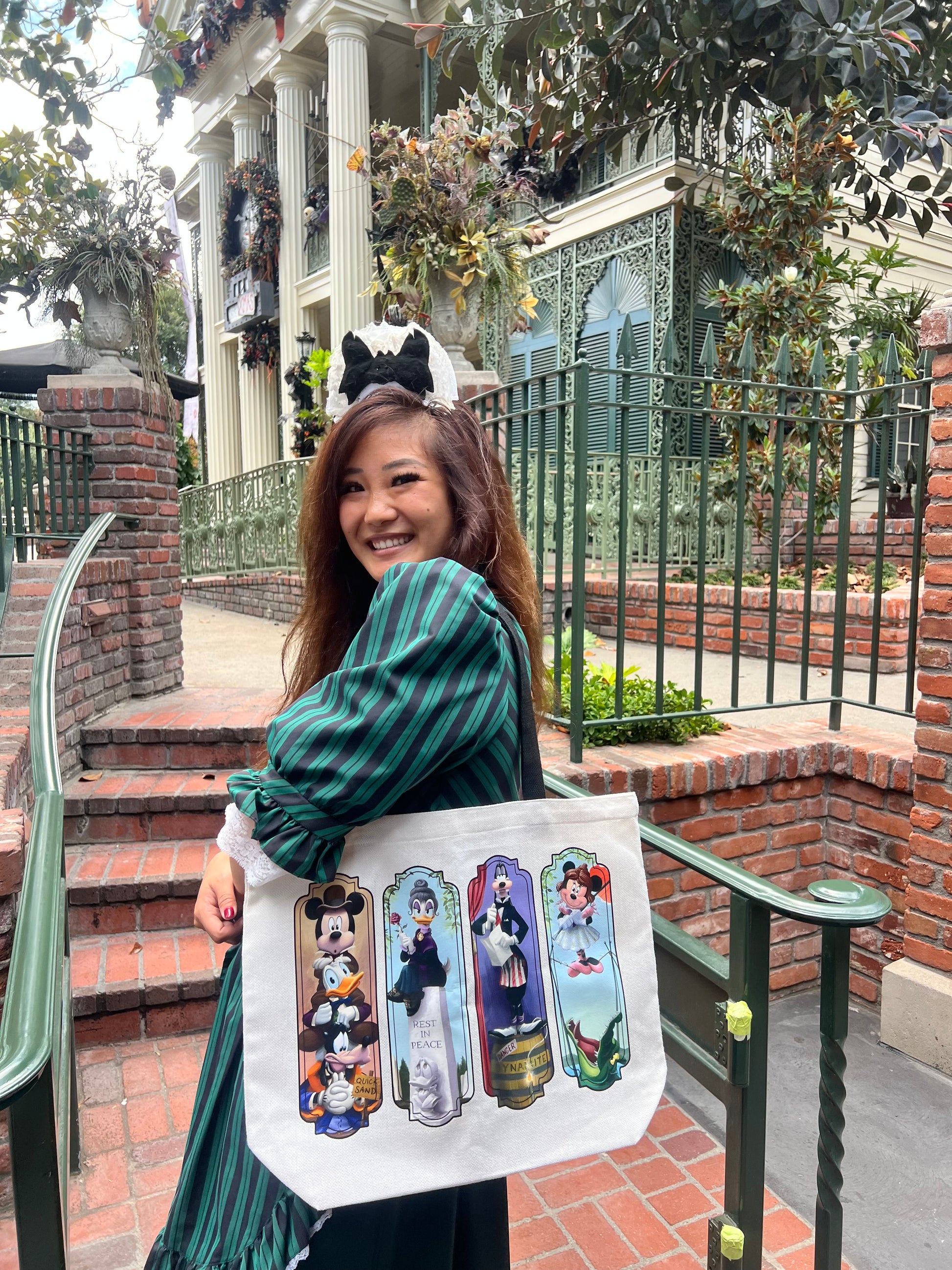 Stretch your spooky style with this Haunted Mansion-inspired tote bag, featuring a playful twist on the iconic stretching portraits—reimagined with your favorite classic characters! Whether you’re headed to the parks, the farmers market, or a ghostly gathering, this bag is both frightfully fun and functional.