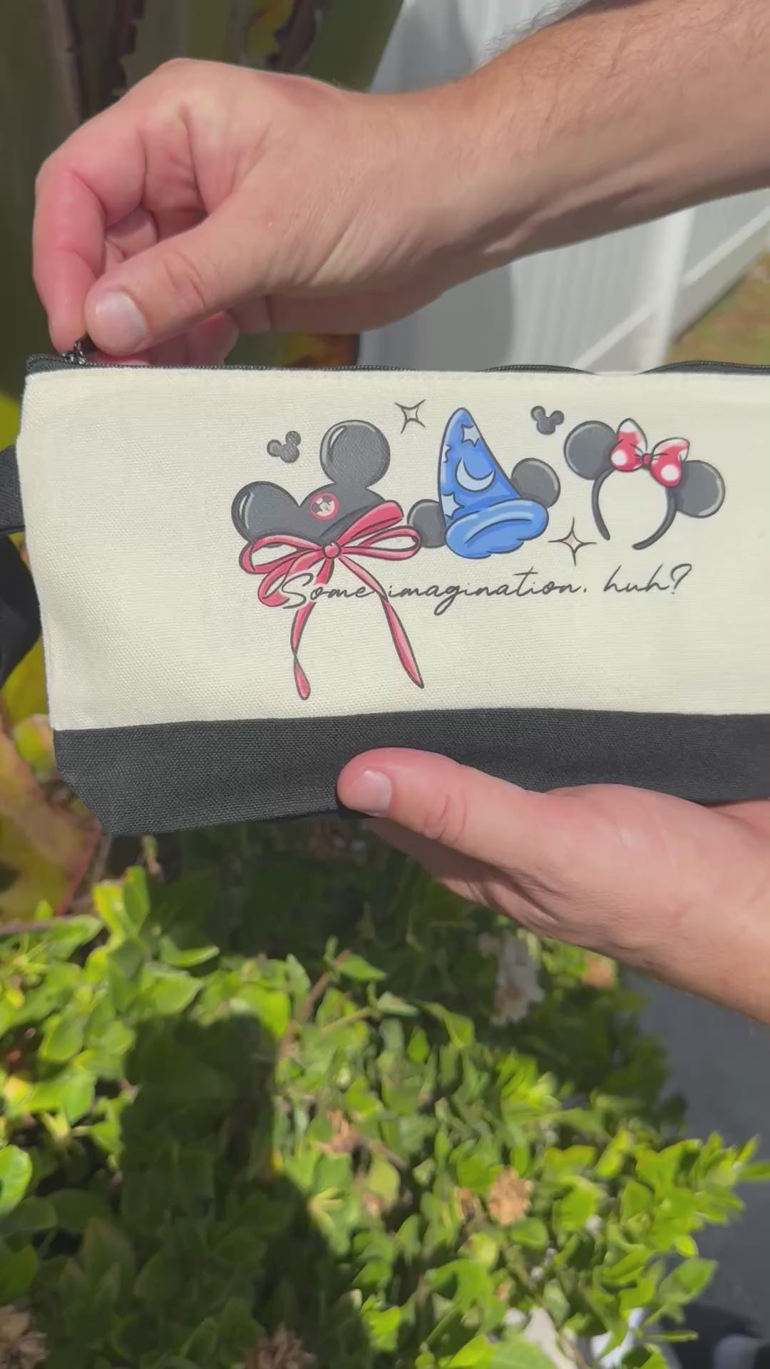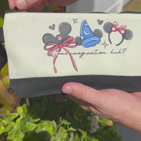 Inspired by the dreamers and believers, this mini tote bag features a colorful sublimated design with classic mouse ears, a sorcerer’s hat, and the iconic quote — “Some imagination, huh?” The artwork is sublimated directly into the fabric, so it stays bright and smooth without peeling or cracking. Compact, durable, and full of character, it’s perfect for carrying your essentials to the parks, your next adventure, or everyday errands.